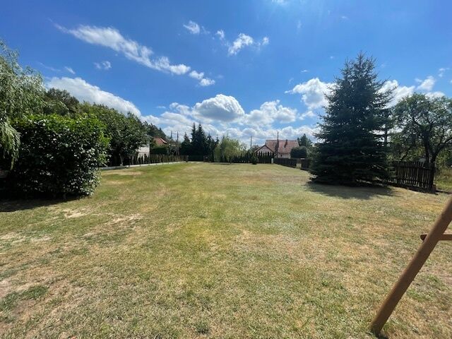 Działka jest ogrodzona z bramą i furtką, zagospodarowana z licznymi