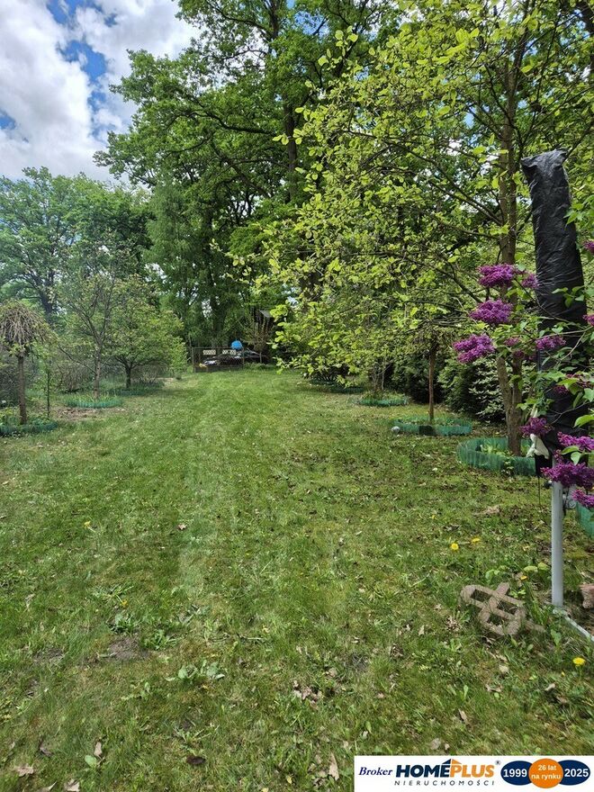 Działka ogrodzona na powierzchni około 1100 m2 z bramą i furtką.